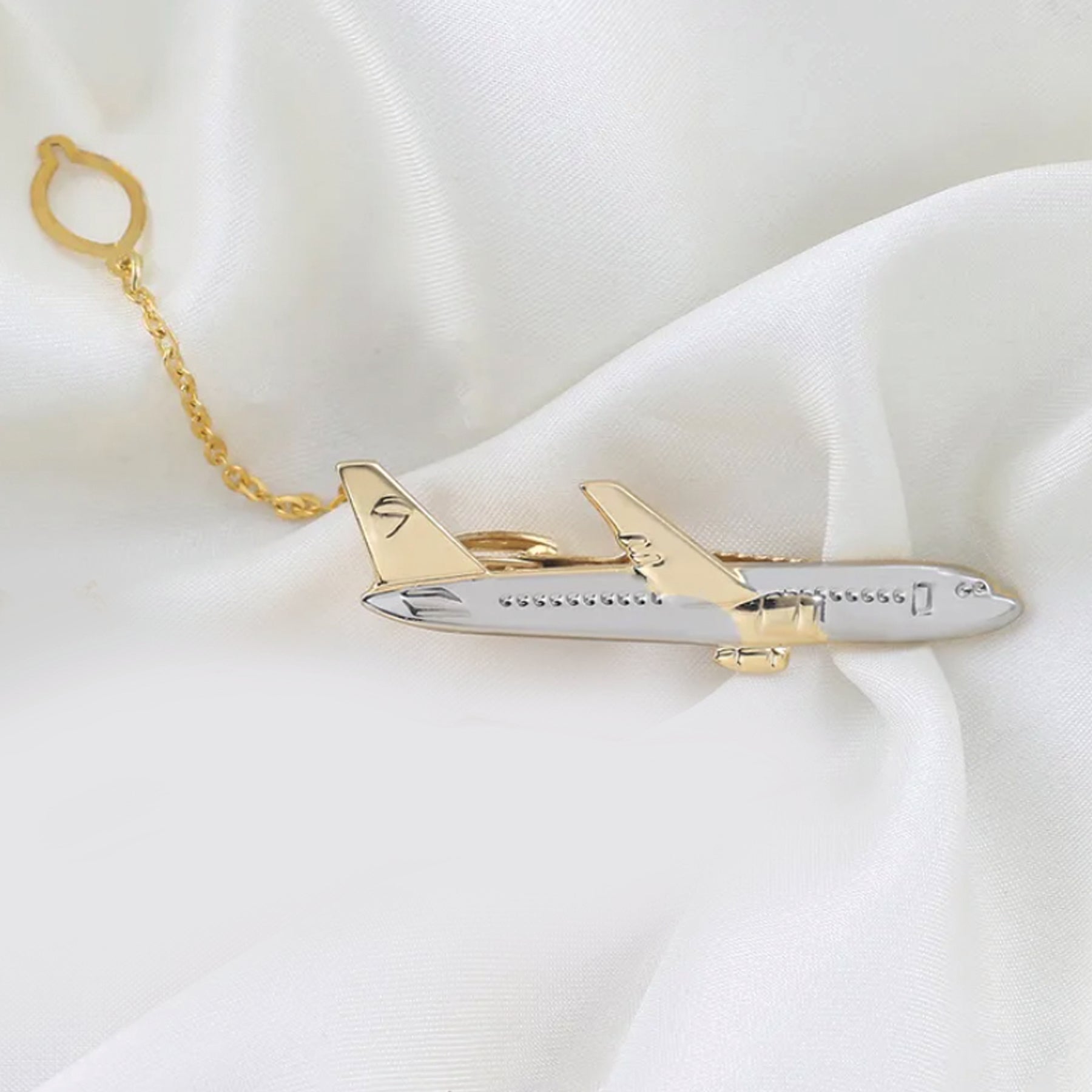 Airplane Lapel Pin with Chain - Aviation Tie Tack & Pilot Gift