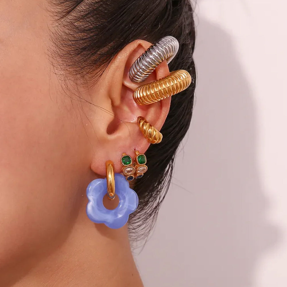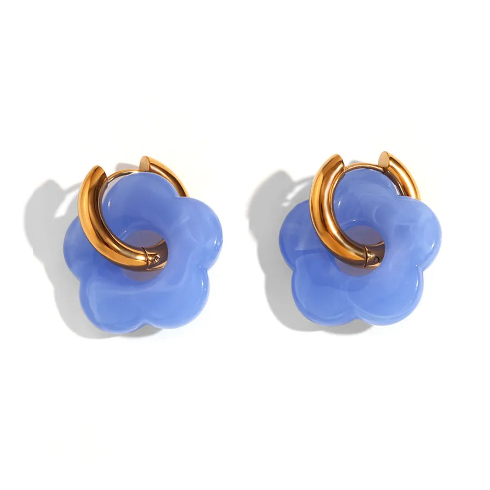 Blue Floral Hoop Earrings 18K Gold Plated