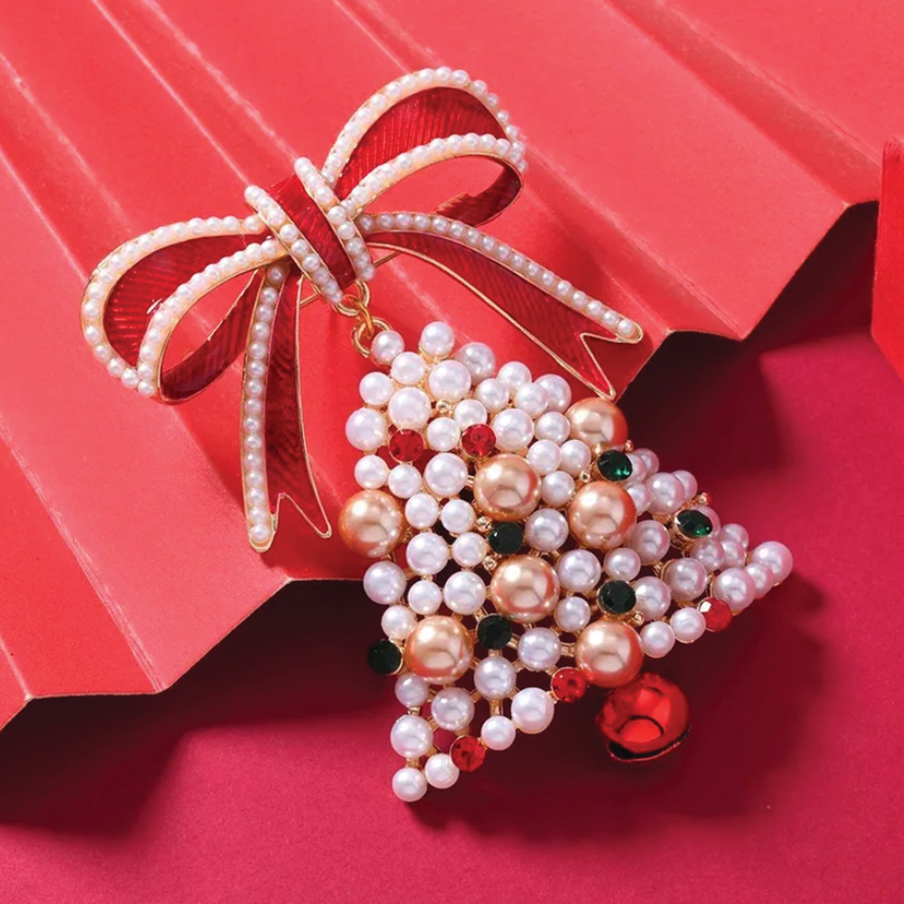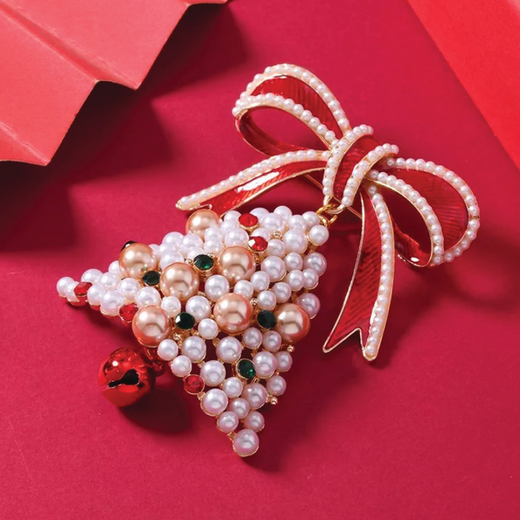 Add festive elegance to your look with this Christmas Bell Brooch with Pearls, a sparkling holiday jewelry pin designed to capture the joy of the season. Crafted with delicate details, shimmering rhinestones, and classic pearls, this Christmas bell brooch makes the perfect holiday accessory for parties, winter outfits, or as a thoughtful Christmas gift. Its timeless design brings together festive charm and refined sophistication, making it an ideal choice for those who love vintage-style brooches and collectible Christmas accessories. Wear it on your coat, sweater, dress, or lapel to add a touch of holiday sparkle that never goes out of style.