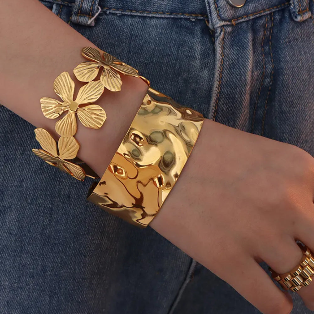 Crafted with high-quality stainless steel, this bangle is not only stylish but also durable and long-lasting. The 18K gold plating ensures an anti-tarnish and water-resistant finish, making it suitable for everyday wear.