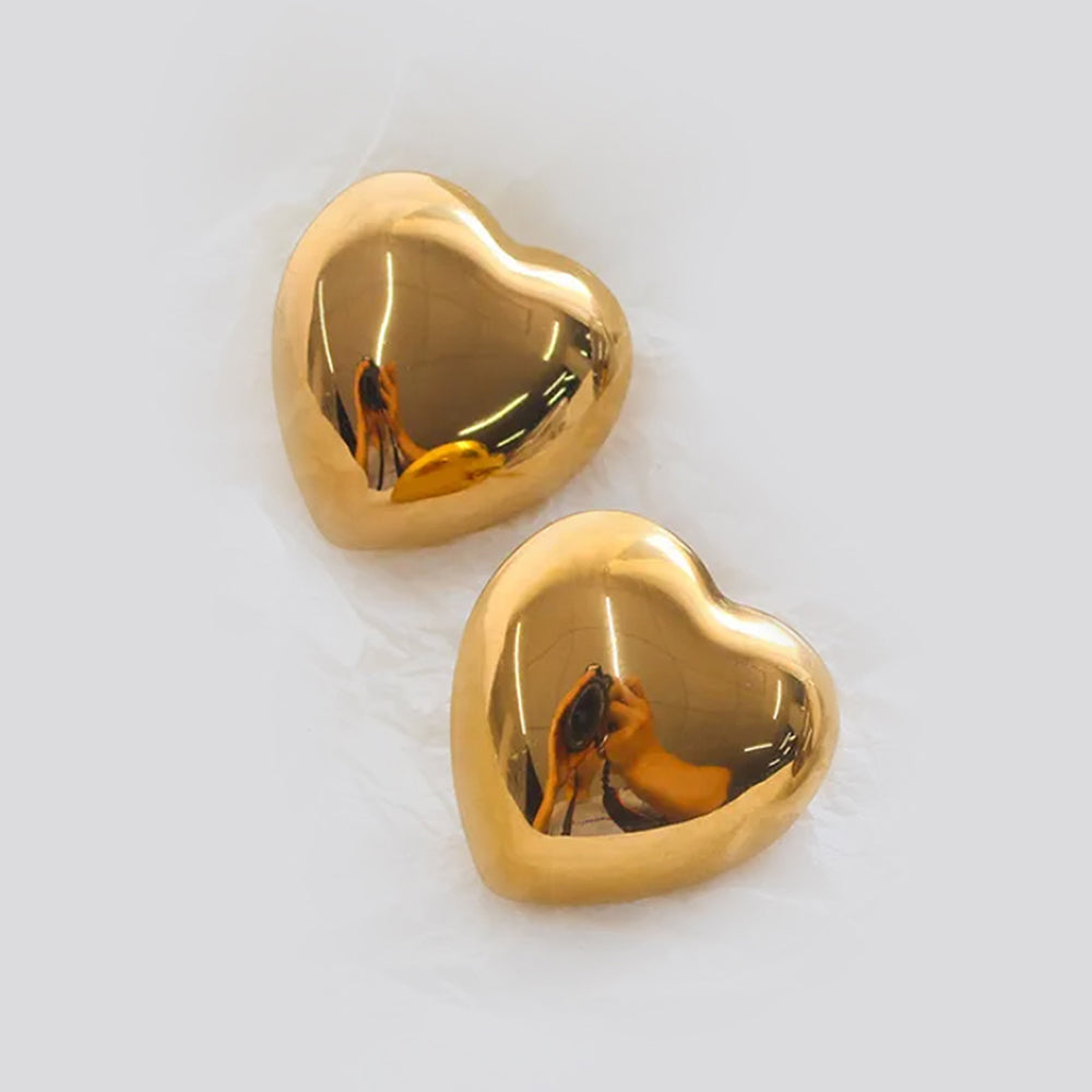 Cute Heart Stud Earrings - 18K Gold Plated