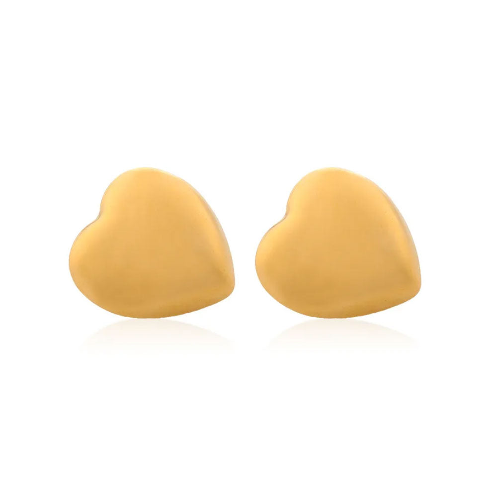 Add a touch of sweetness to your outfit with these charming heart stud earrings. Made with high-quality titanium steel and coated with 18K gold, these earrings are not only durable but also resistant to tarnishing. The heart shape design adds a playful and elegant element to your look. Elevate your style with these adorable and elegant earrings, perfect for any occasion. These earrings are a must-have for any jewelry collection, and their 18K gold plating adds a luxurious touch.