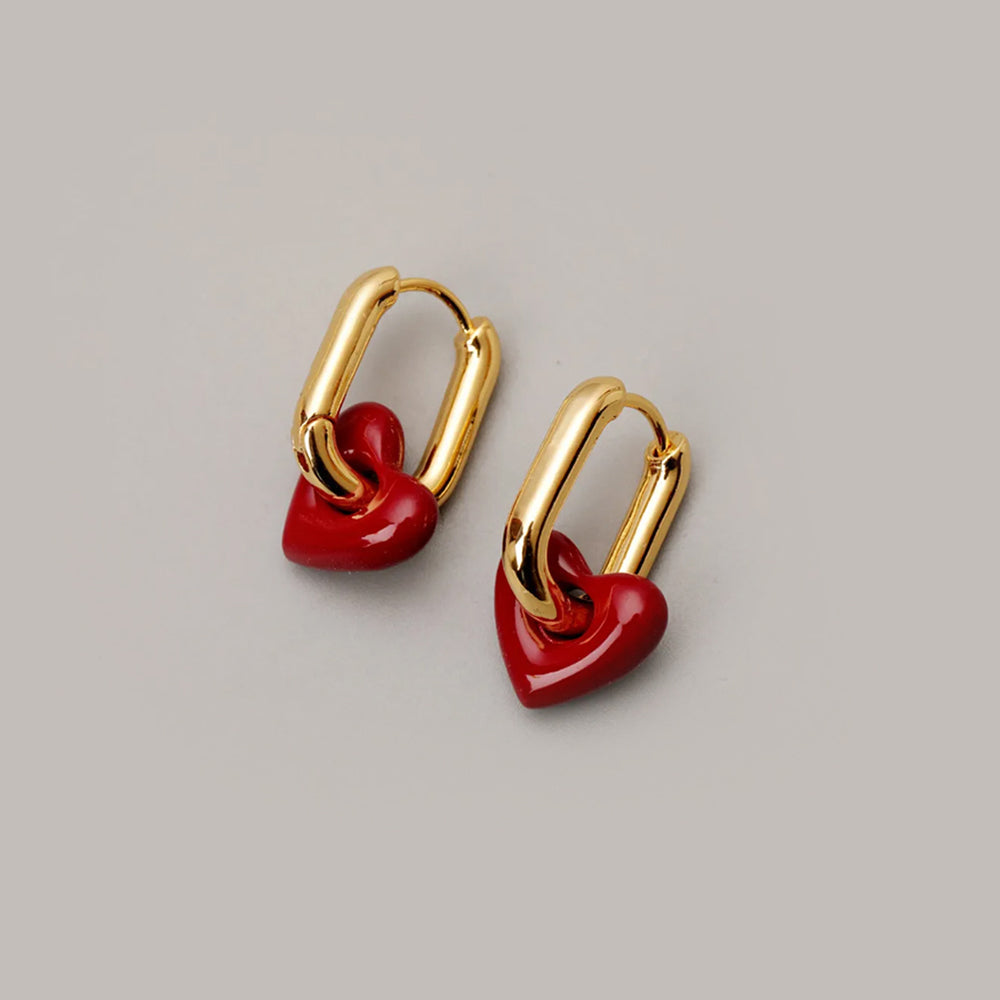 Cute Red Heart Hoop Earrings - 18K Gold Plated