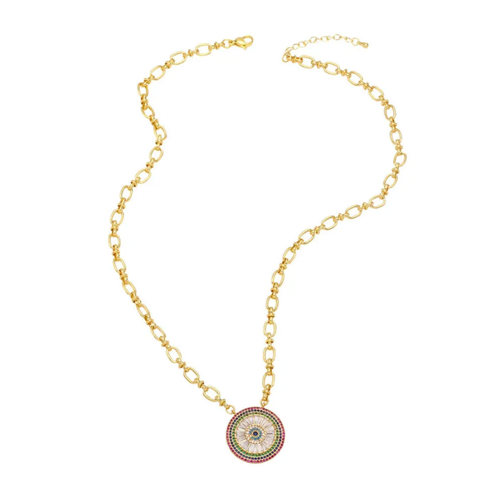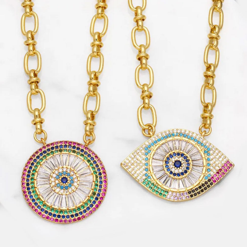 Luxurious Colorful Evil Eye Zircon Necklace - 18K Gold Plated