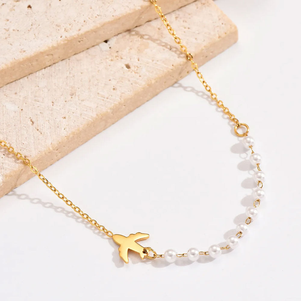 Travel Airplane Pear Necklace - 18K Gold Plated