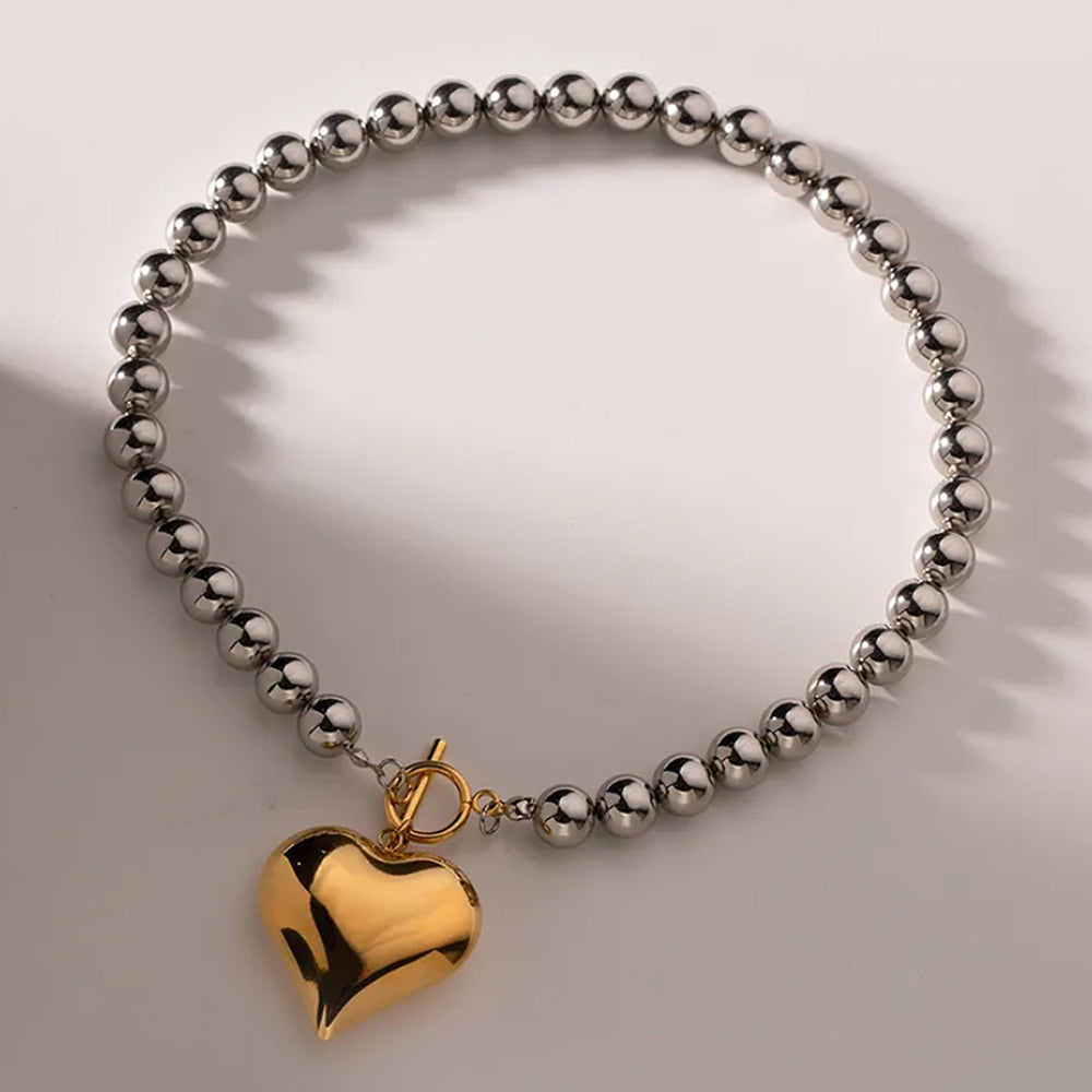 Add a touch of elegance and charm to your outfit with our latest accessory - the Two-Tone Chunky Heart Necklace.